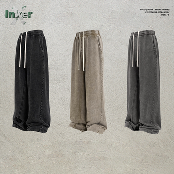 Gran oferta, pantalones de calle de retales de gran tamaño con estampado de patrón para hombre, pantalones planos de estilo Vintage de pierna ancha holgados de algodón 100%
